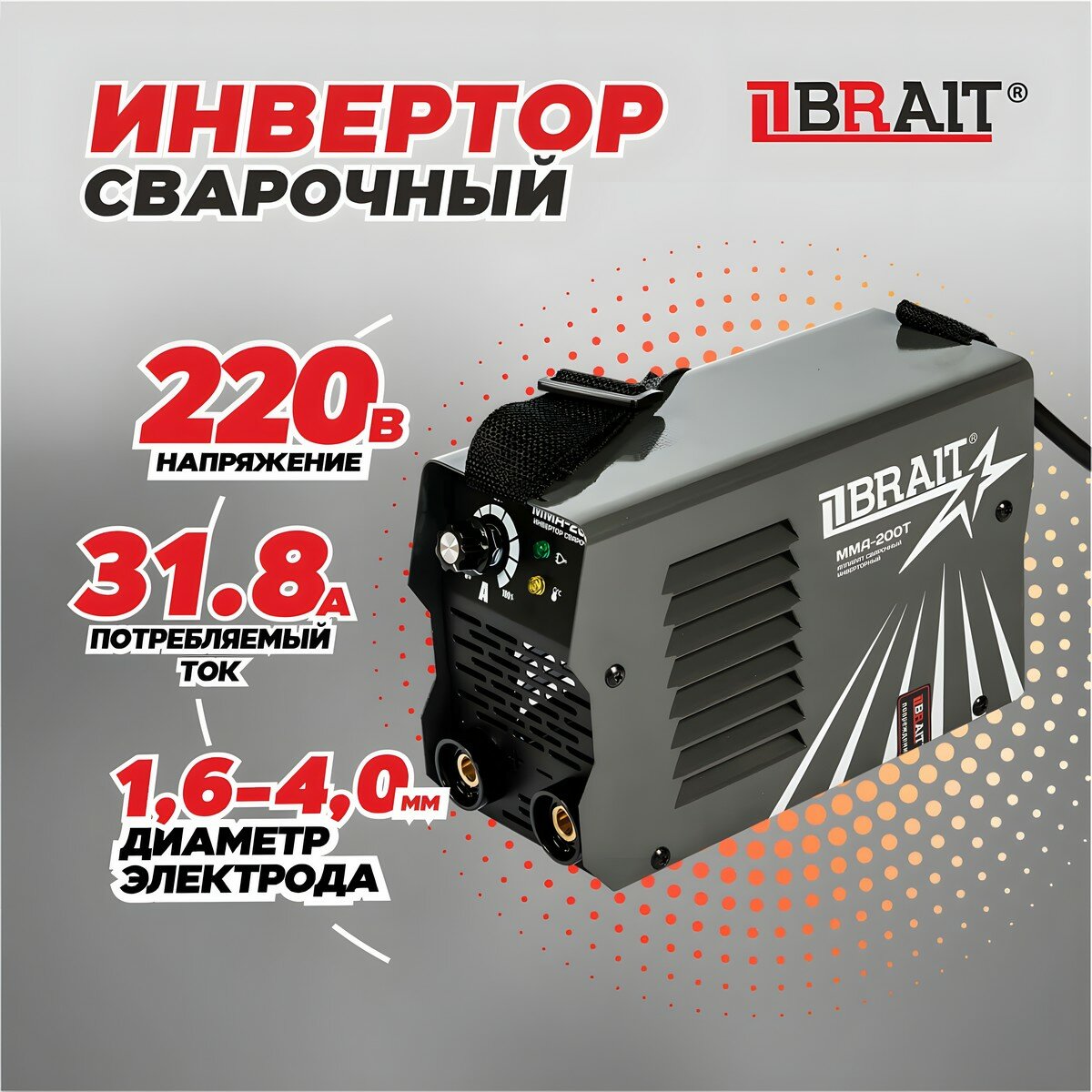 Сварочный инвертор BRAIT ММА-200T подарок на день рождения мужчине, любимому, папе, дедушке, парню
