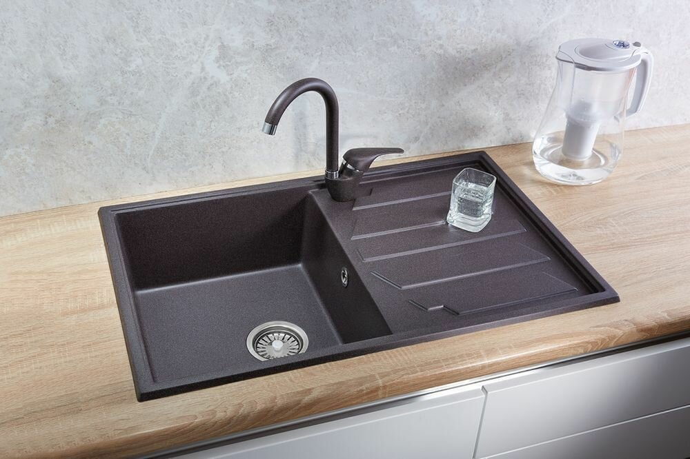 8002, чёрный, кухонная мойка, кварц