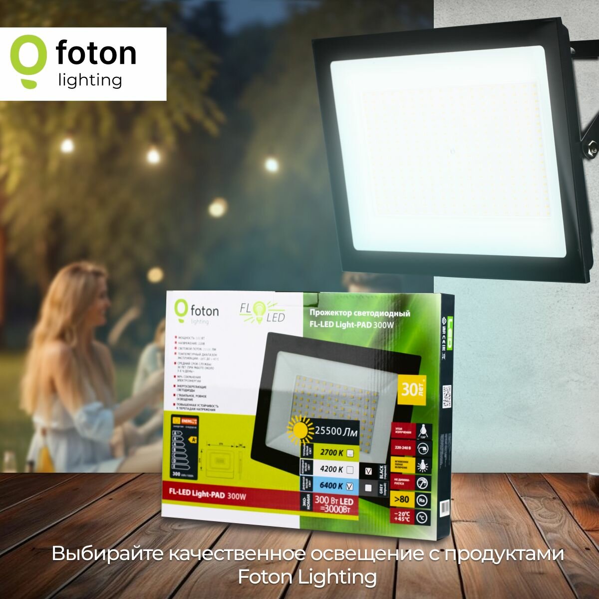 Светодиодный прожектор Foton Lighting 300Вт 220В 6400К Холодный белый 25500Лм IP65 черный 370x270x38мм 1910г, упаковка 1шт