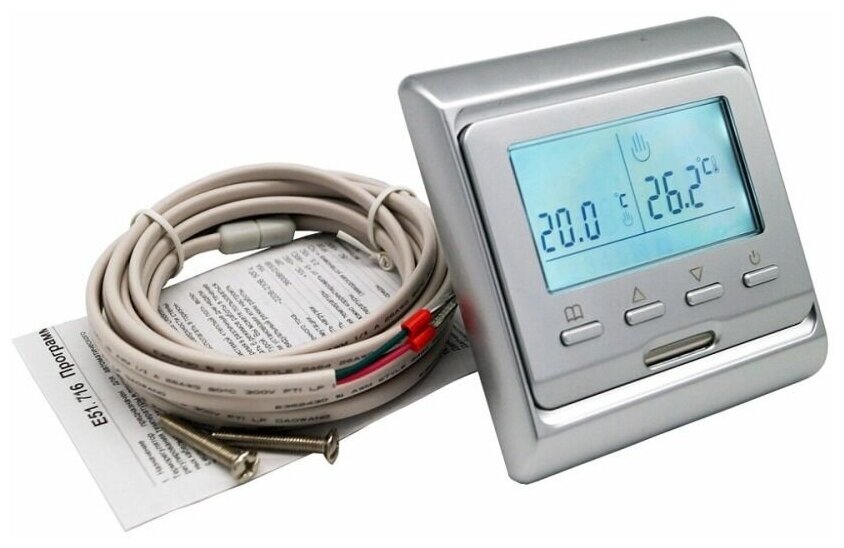 Терморегулятор для электрического теплого пола Е51.716 серебристый (серебро)