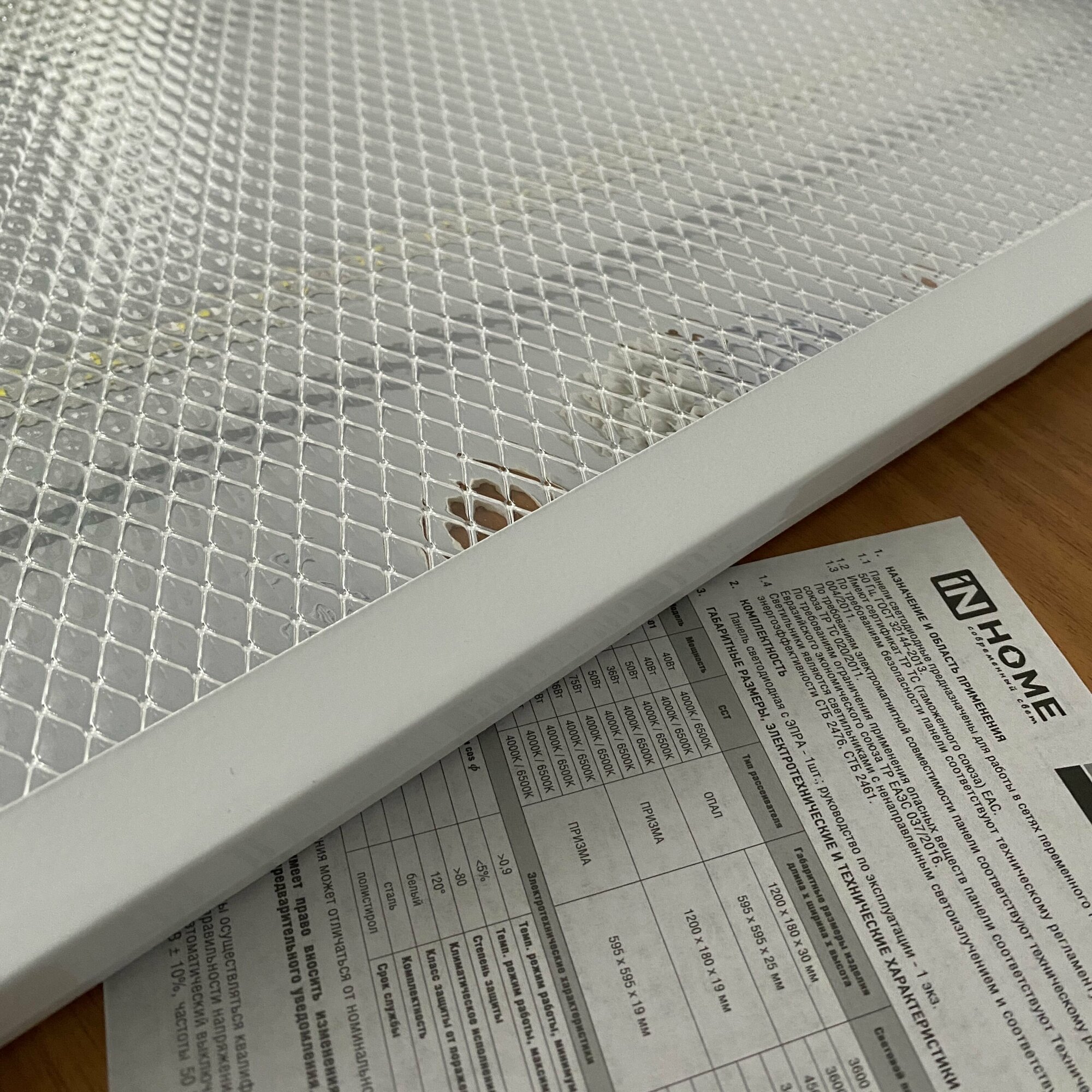 In Home LPU-02-ПРИЗМА 100Вт 6500К IP40 8500лм 230В 595х595х19мм встраив. с рассеив. призма универс. панель 4690612029795 (белый)