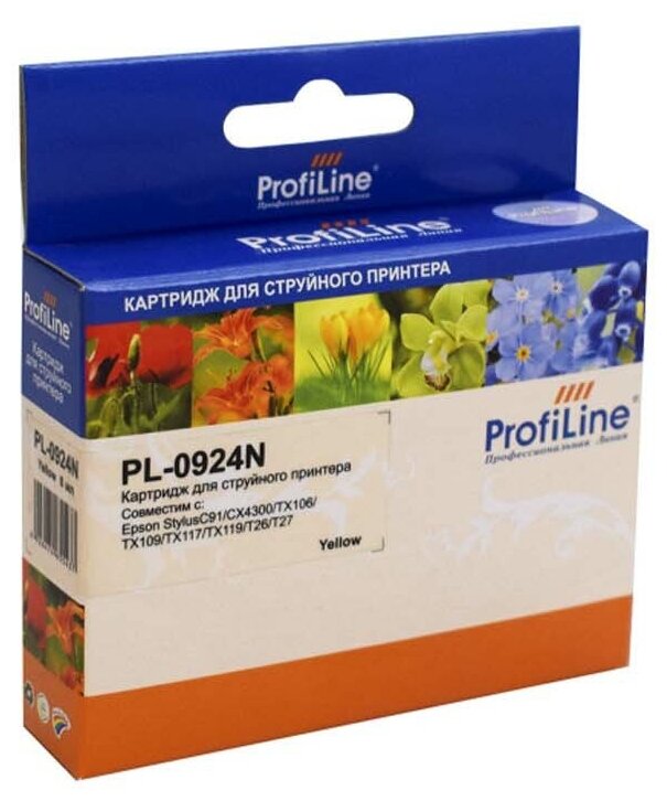 СохранитьСтруйный картридж PL-T0924 для принтеров Epson Epson Stylus T26/T27/C91/TX106/TX109/TX117/TX119/C240/CX4300 с чернилами на водной основе Yellow 5,5 мл ProfiLine интересное: