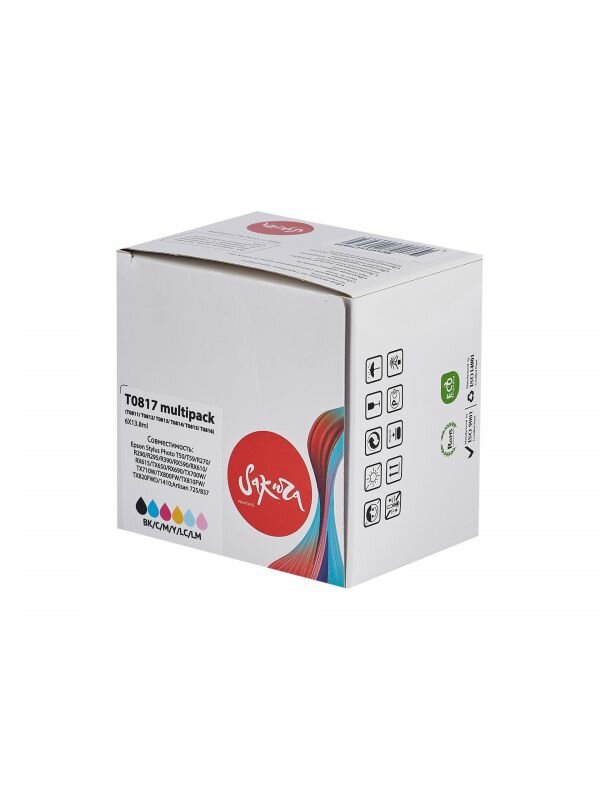 Картридж Sakura SIC13T11174A10 (схожий с Epson C13T11174A10) T0817 Multipack для Epson Stylus Photo T50/T59/R270/R290/R295/R390/RX590/RX610/RX615/TX650/RX690/TX700W/TX710W/TX800FW/TX810FW/TX820FWD/1410/Artisan 725/837