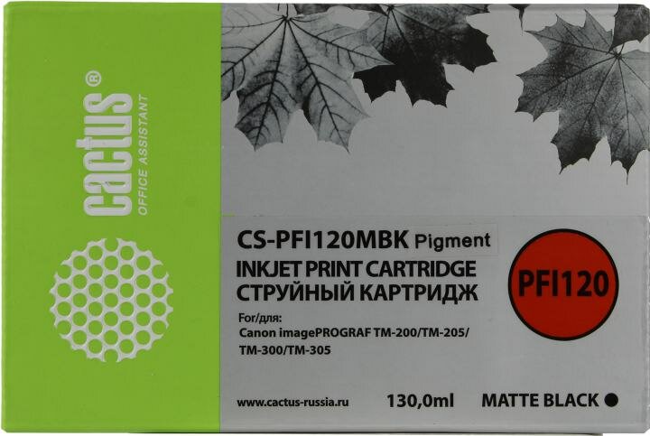 Купить Картридж струйный CACTUS (CS-PFI120MBK) для Canon imagePROGRAF TM-200/TM-205/TM-300, черный матовый