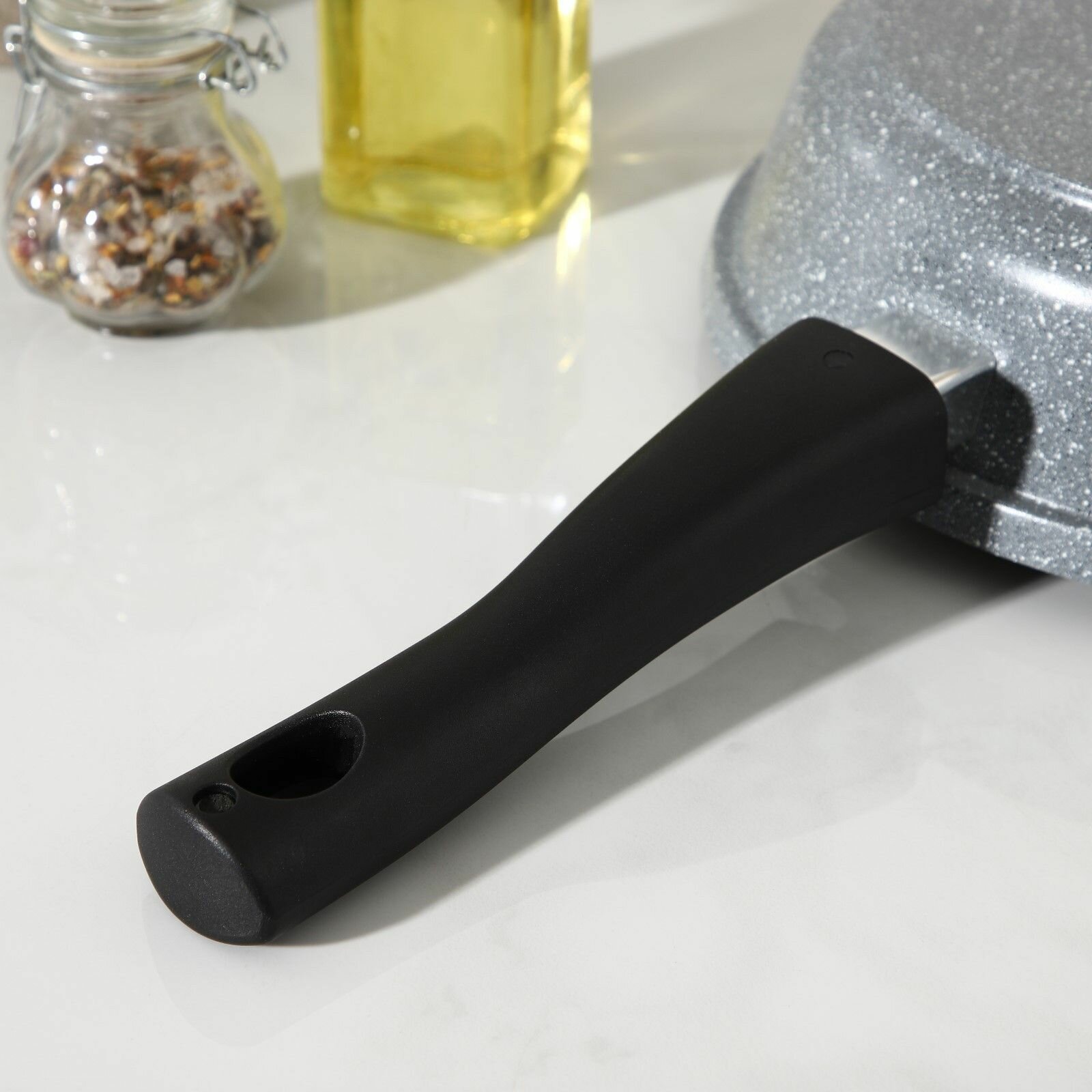 Сковорода Доляна «Марбл», d=24 см, стеклянная крышка, съёмная ручка, антипригарное покрытие, цвет серый