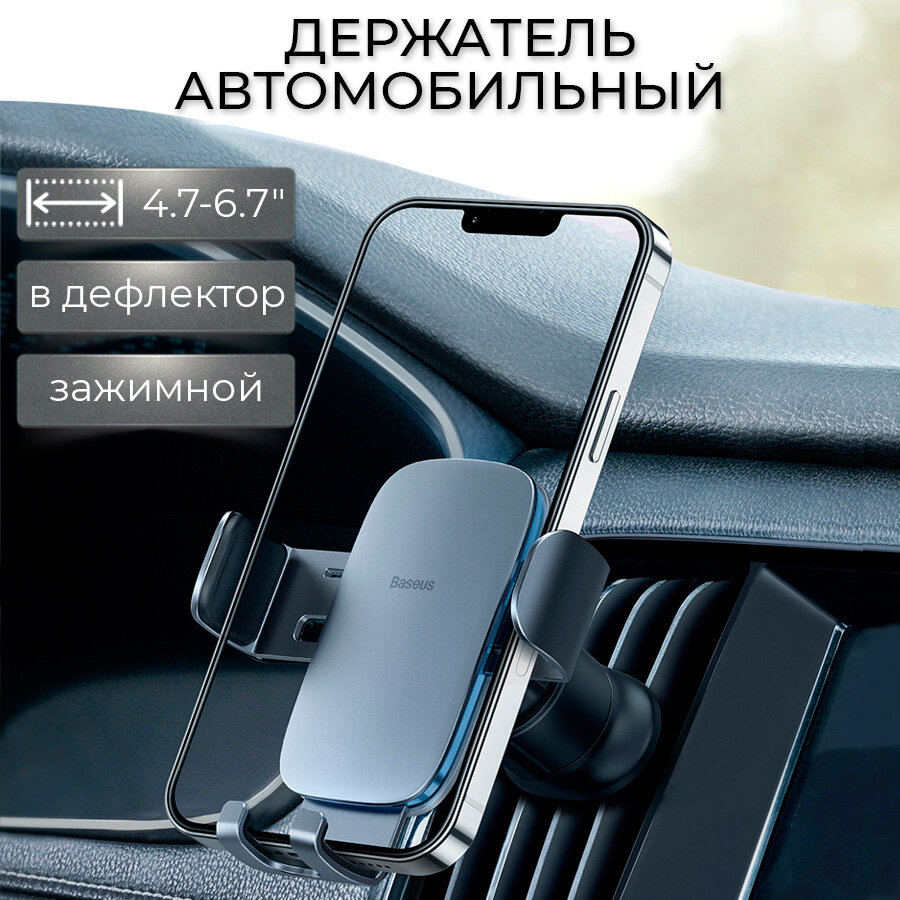 Автодержатель в воздуховод Baseus Metal Age 2 Gravity Black, на решетку вентиляции, авто крепление на воздуховод, автомобильный держатель в решетку