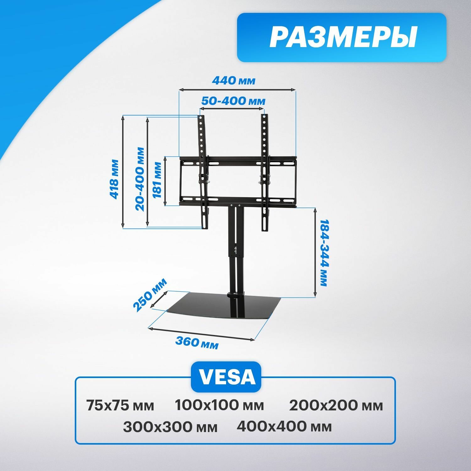 | Стандарт Vesa | 100x100 мм / 100x150 мм / 100x200 мм / 150x100 мм / 150x150 мм / 200x100 мм / 200x200 мм / 200x300 мм / 200x400 мм / 300x200 мм / 300x300 мм / 300x400 мм / 400x200 мм / 400x300 мм / 400x400 мм / 75x75 мм |