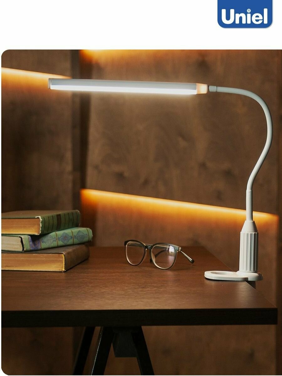 Лампа настольная светодиодная на струбцине, светильник настольный Uniel TLD-572, 7 Вт, 500 лм, 4500К (сенсорный диммер)