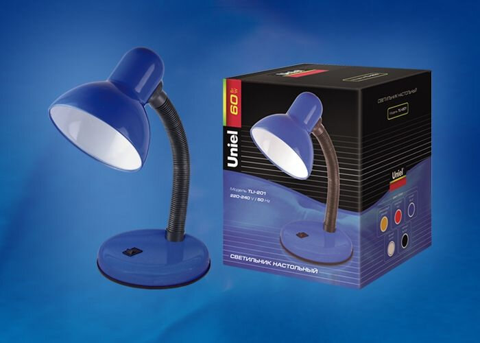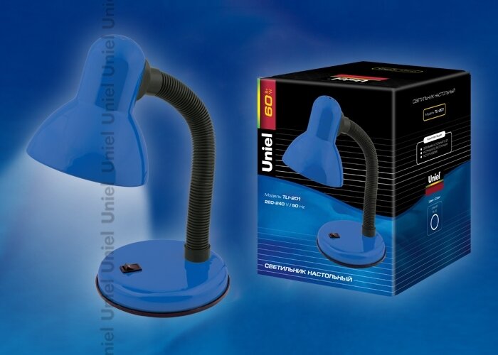 Лампа настольная, светильник настольный с цоколем E27 60W Uniel TLI-201, синий