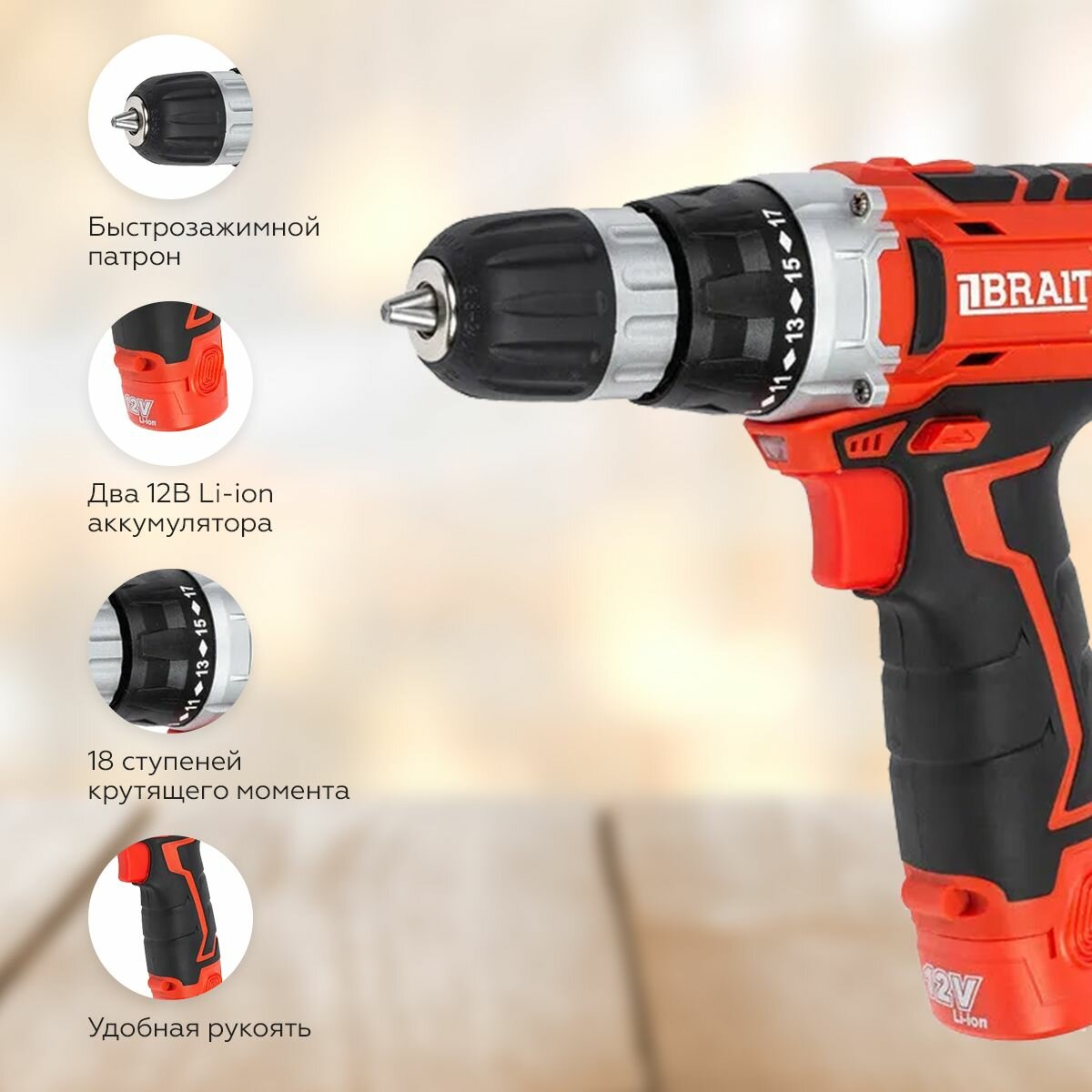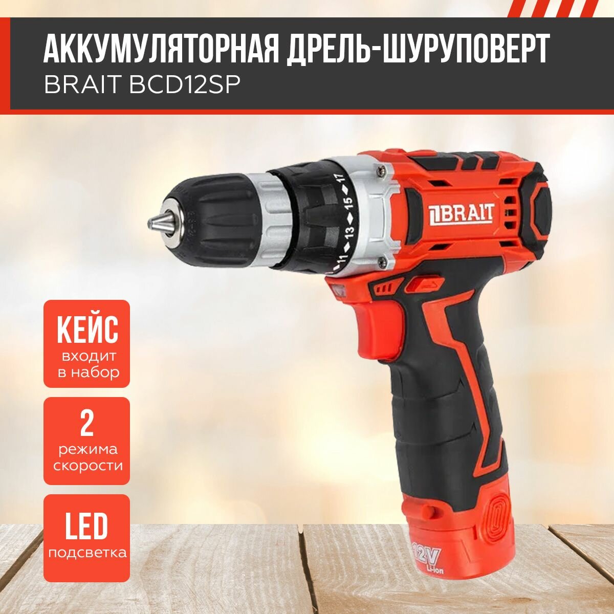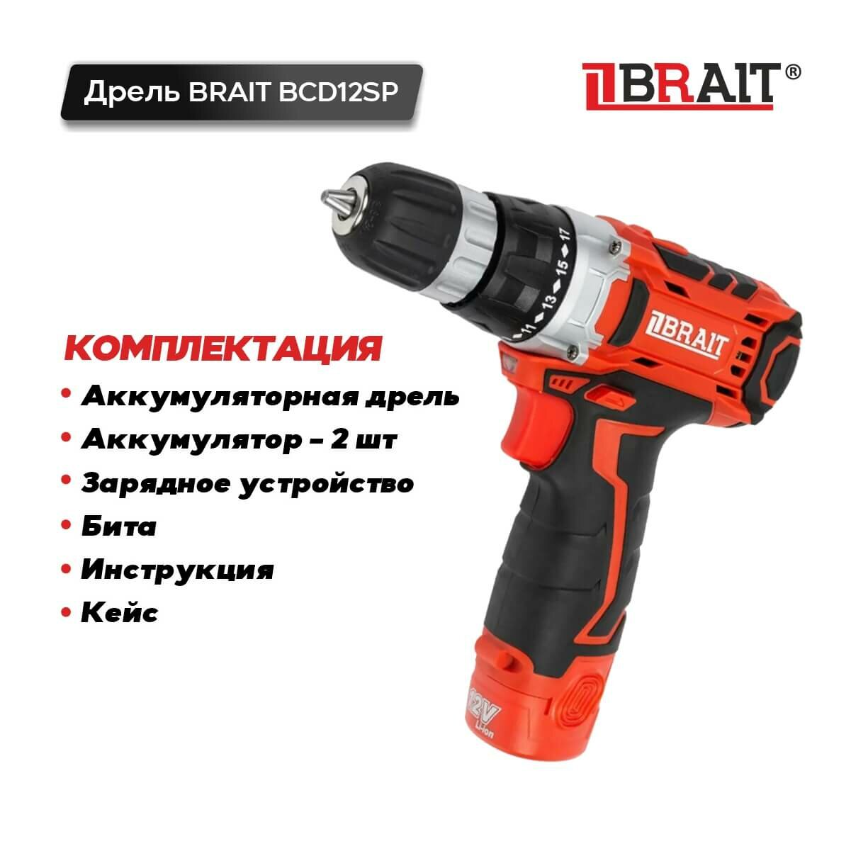 Дрель аккумуляторная BRAIT BCD12SP интересное: