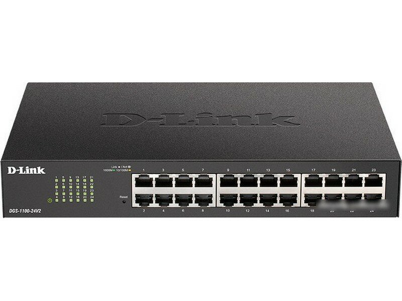 Настраиваемый L2 коммутатор D-Link DGS-1100-24PV2/A2A c 24 портами 10/100/1000Base-T (12 портов РоЕ 802.3af/at, PoE-бюджет 100 Вт)