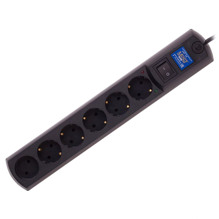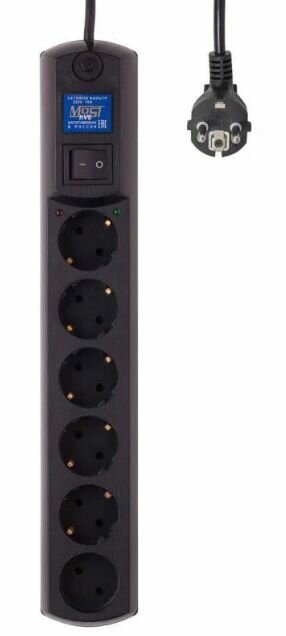Сетевой фильтр MOST HV6 5М ЧЕР, 6 розеток, 2200 ВA, защита от перегрева и короткого замыкания, черный