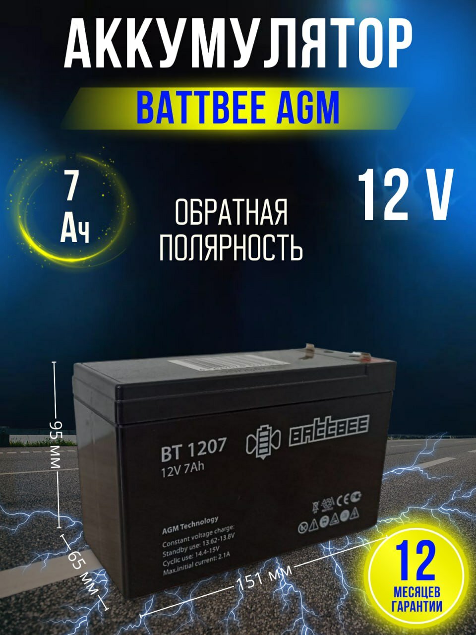 Универсальный аккумулятор 12 Вольт 7 Ампер BATTBEE BT 1207 интересное: