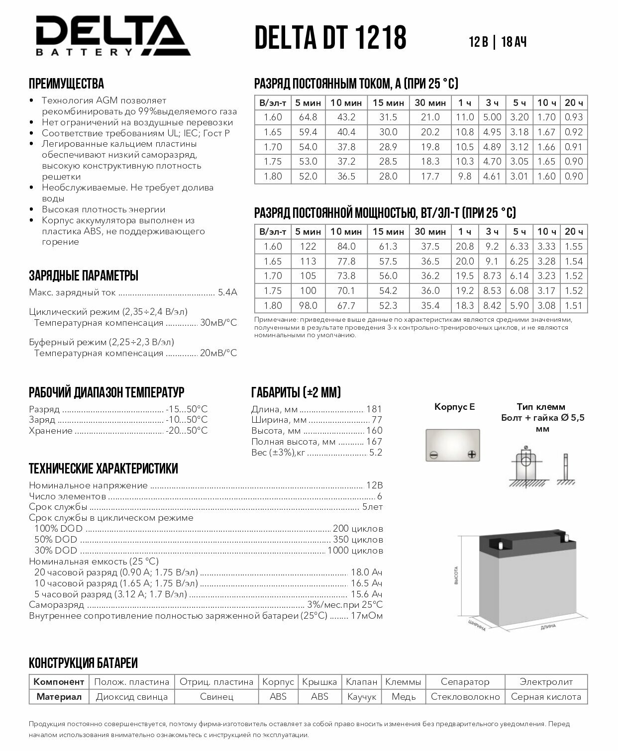 | Производитель | DELTA Battery |