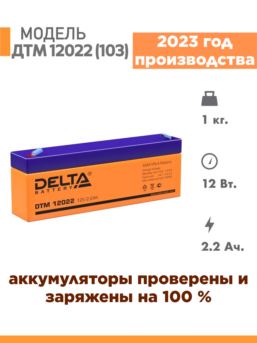 Аккумуляторная батарея DELTA Для источника бесперебойного питания, DTM 12022, 12 В, 2,2 Ач (DTM 12022)