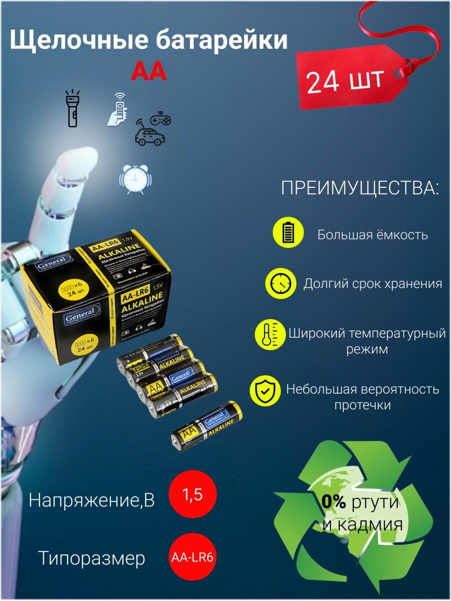 General, Батарейка ,Количество 24 шт, Химический тип Щелочной, Форм-фактор LR6 AA интересное: