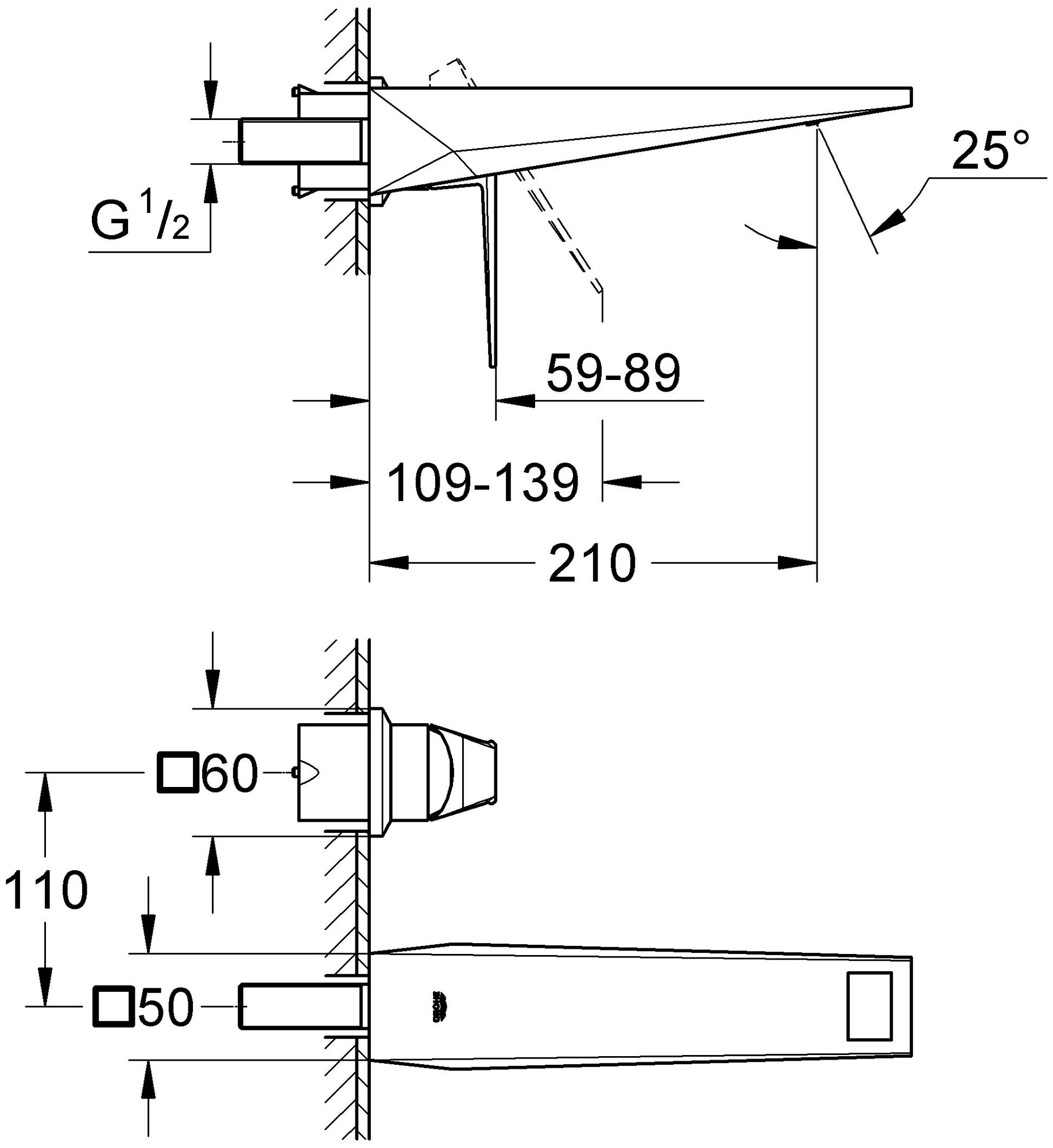 | Длина излива | 210 мм |