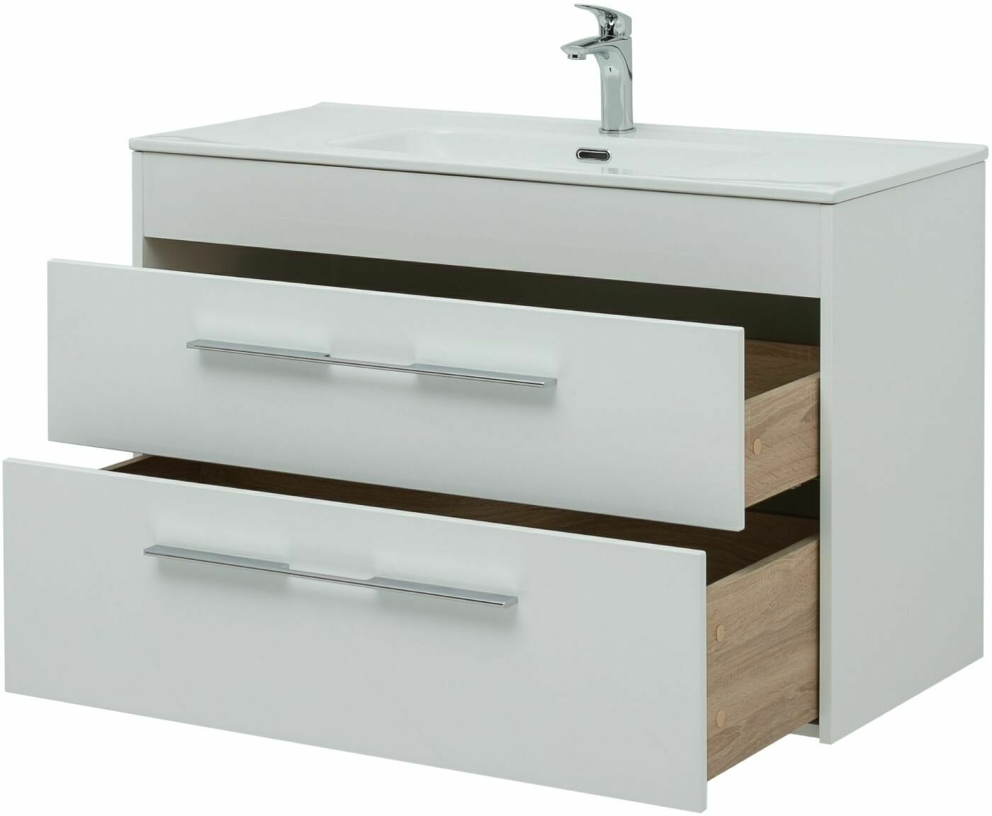 Тумба под раковину Aquanet Августа 100 Flat два ящика, белый глянец (277509)