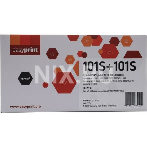 Двойная упаковка картриджа EasyPrint LS-101SD для Samsung ML-2160/2165/SCX-3400/3405/3407 (2шт.x1500 стр.) с чипом D101S