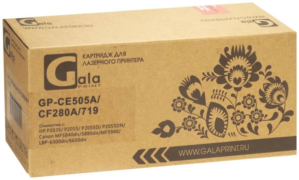 Картридж GalaPrint CE505A/CF280A/719 (HP 05A HP 80A) для принтеров HP P2030/P2035/P2055/M401/M425/Canon LBP251/LBP252/LBP253/LBP6300/LBP6310/LBP6650/LBP6670/LBP6680/MF411/MF416/MF418/MF419/MF5840/MF5880/MF5940/MF5980/MF6140/MF6180 лазерный, совместимый