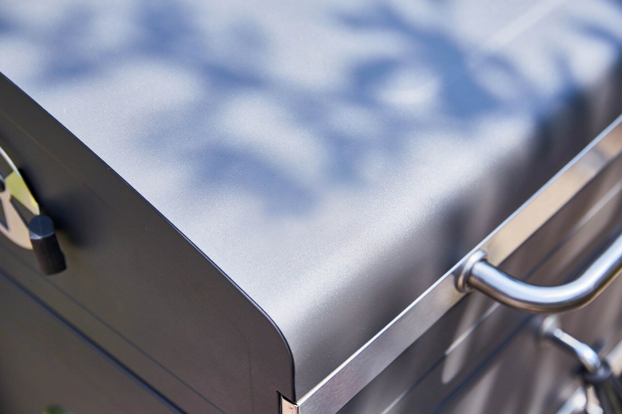 Угольный гриль-барбекю передвижной с чугунной решеткой, крышкой и датчиком температуры Master интересное: