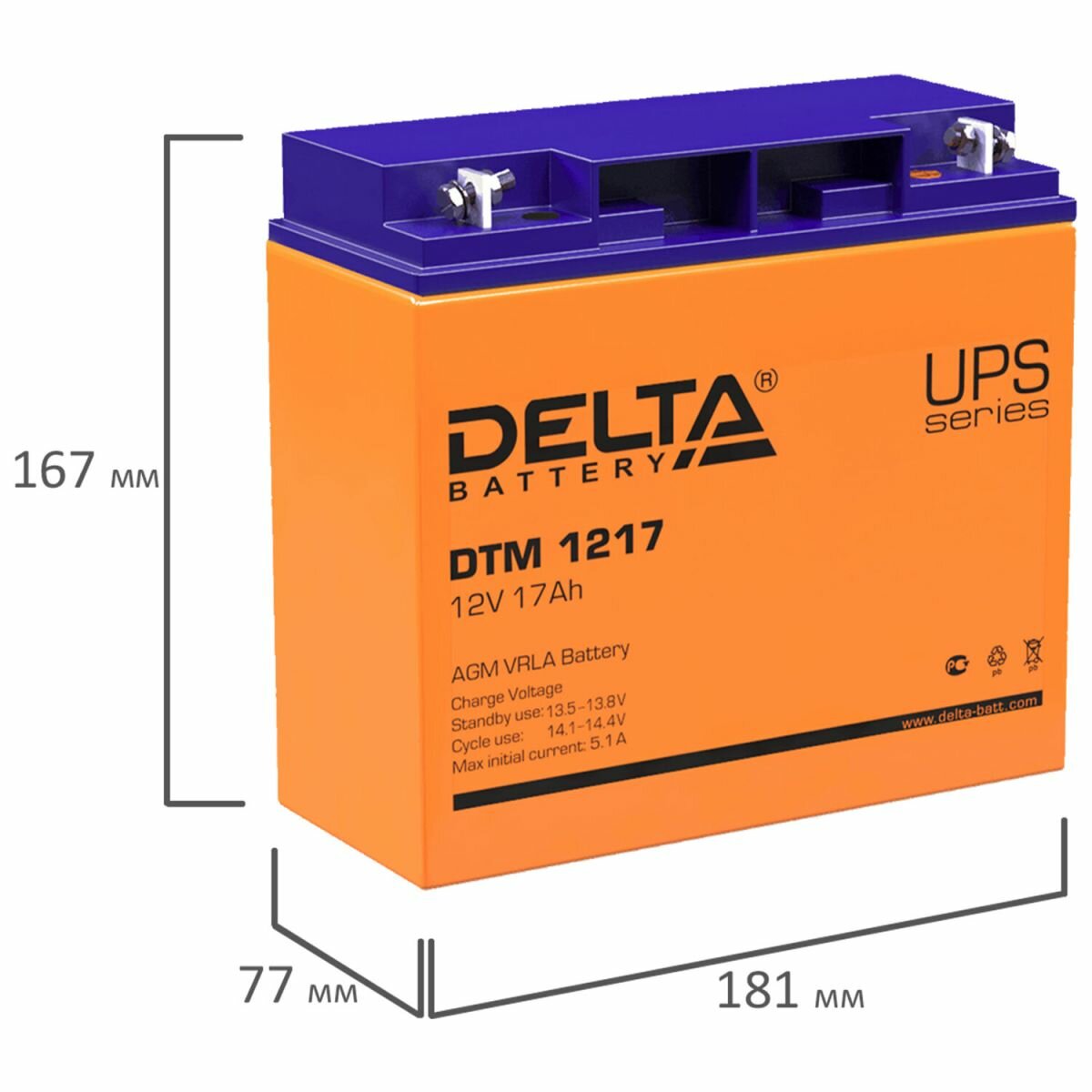 Аккумуляторная батарея для ИБП любых торговых марок, 12 В, 17 Ач, 181х77х167 мм, DELTA, DTM 1217 Комплект - 1 шт .