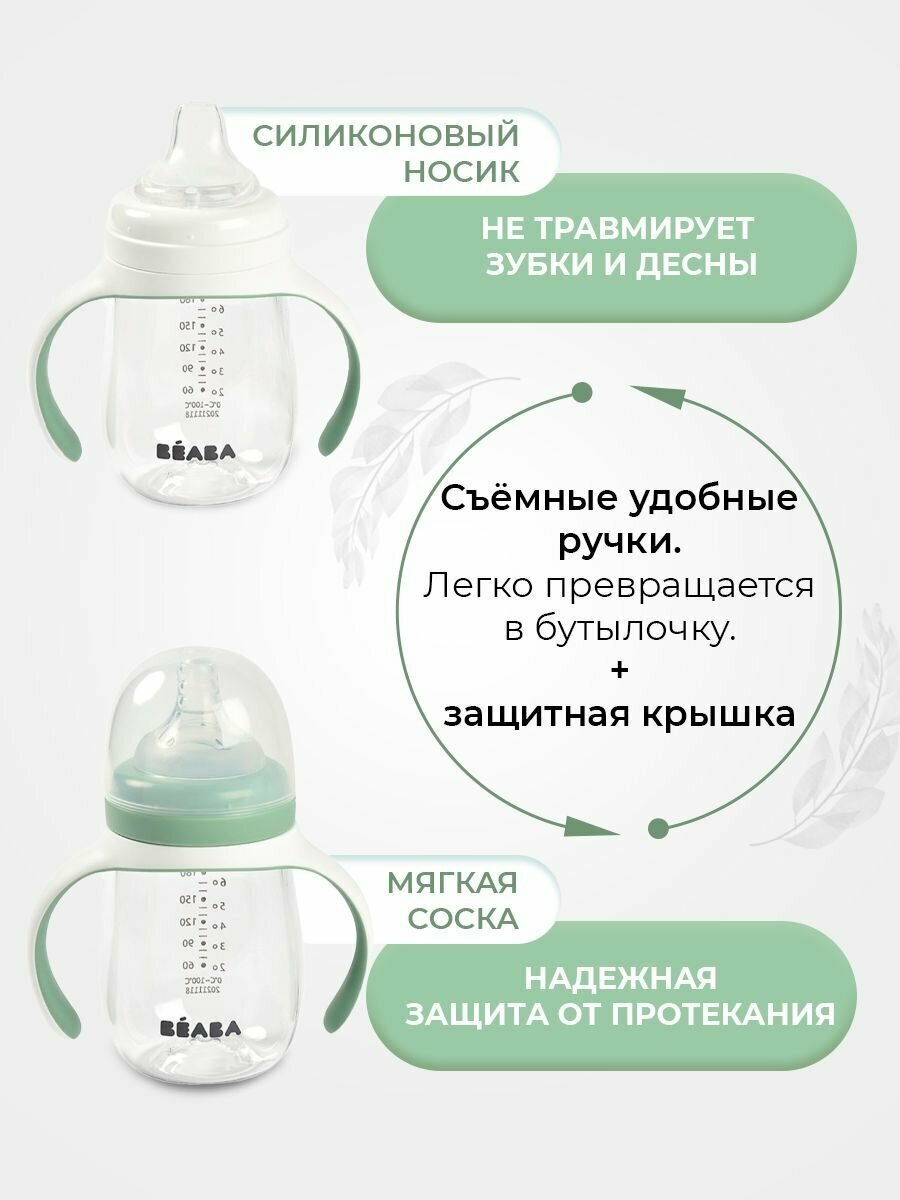BEABA поильник детский 210 мл. с двумя насадками в комплекте, поильник непроливайка с соской и силиконовым носиком, бутылочка для кормления