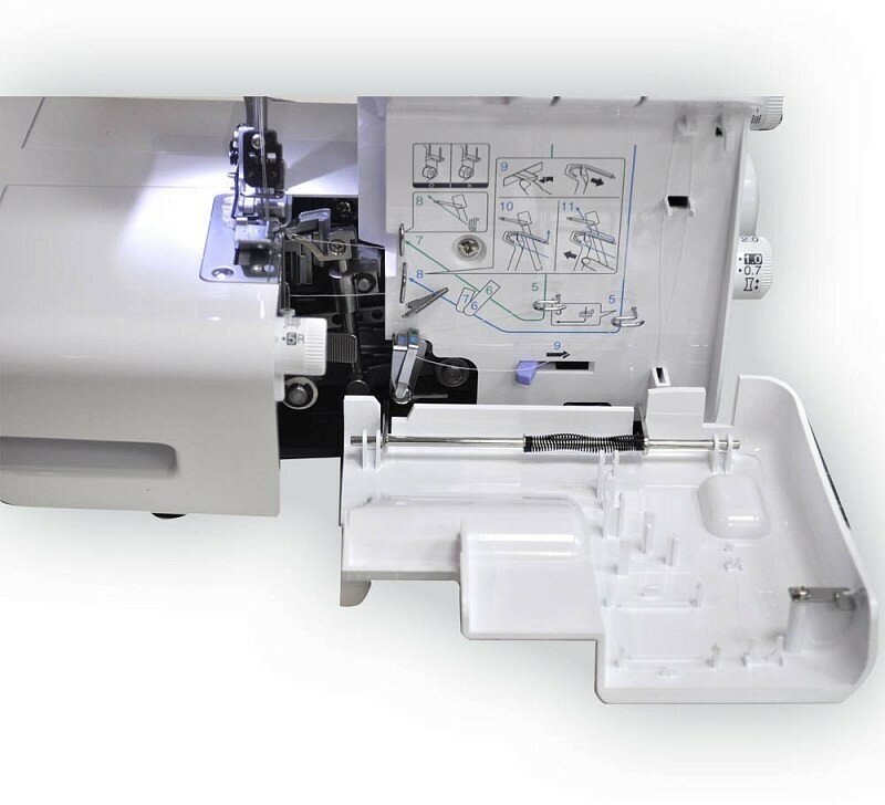 Выполняет 8 видов швов, работает с несколькими нитями и очень тихо. В оверлоке регулируется натяжение нитей, подача ткани, длина стежка и ширина строчки, давление лапки. Очень подробная инструкция. Нитки вставляются легко, примеры швов изображены на самой машинке. Все ткани шьет легко. Имеется встроенная подсветка рабочей зоны, очень удобно. Также порадовал лоток для сбора обрезных остатков и приставкой столик, очень удобно работать, чистенько. Производитель очень постарался. Рекомендую! Предусмотрена рукавная платформа, удобно в эксплуатации. |