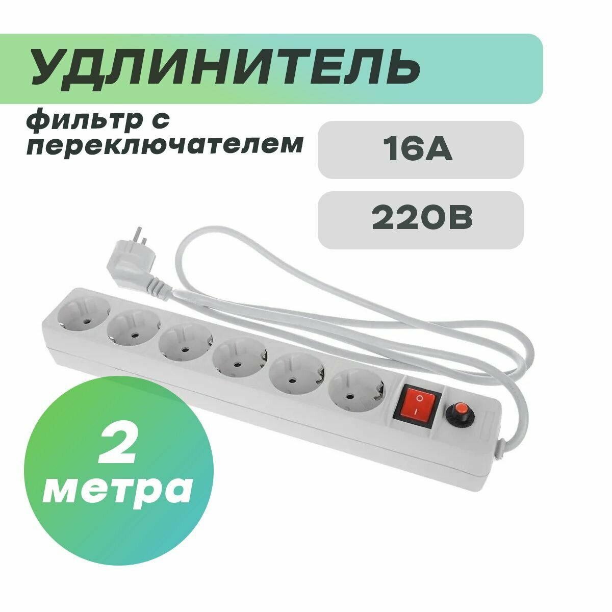 Удлинитель 6-местн 2м с/з (белый) фильтр с переключателем интересное: