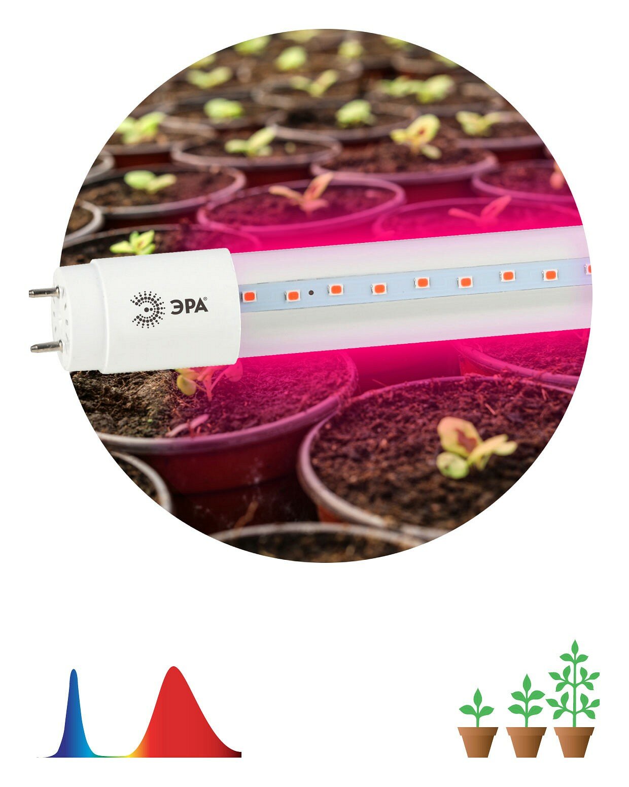 Лампа светодиодная FITO-18W-Ra90-Т8-G13-NL 18Вт T8 линейная 92LED 2835 IP20 35000ч для растений полноспектральная стекло Эра, ЭРА Б0042987 (1 шт.)