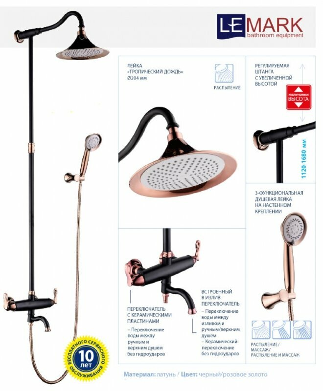 Душевая стойка Lemark Prime LM6162BRG, комбинированное