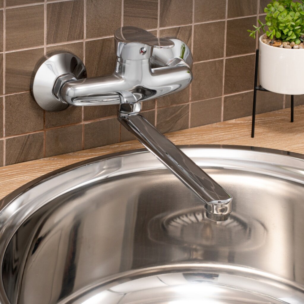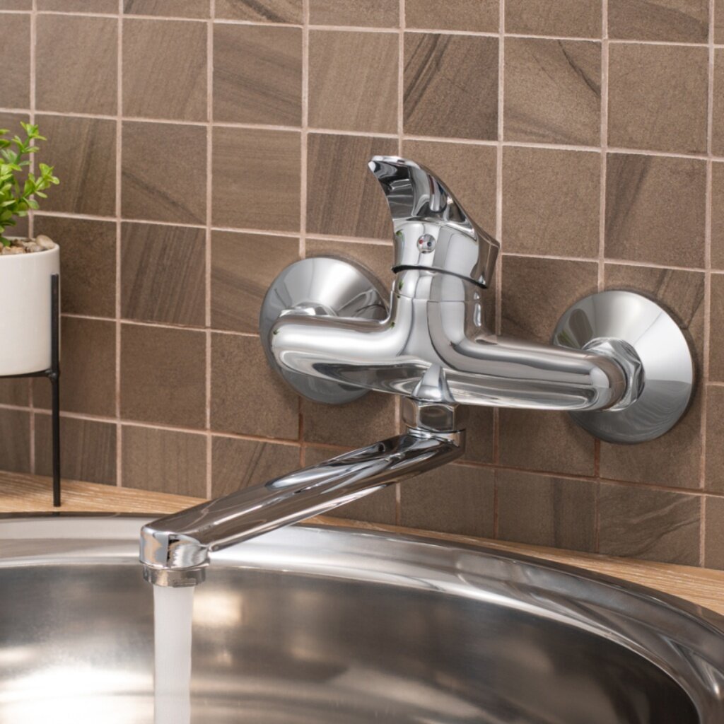 Смеситель для кухни, РМС SL86-005, настенный, поворотный излив, однорычажный