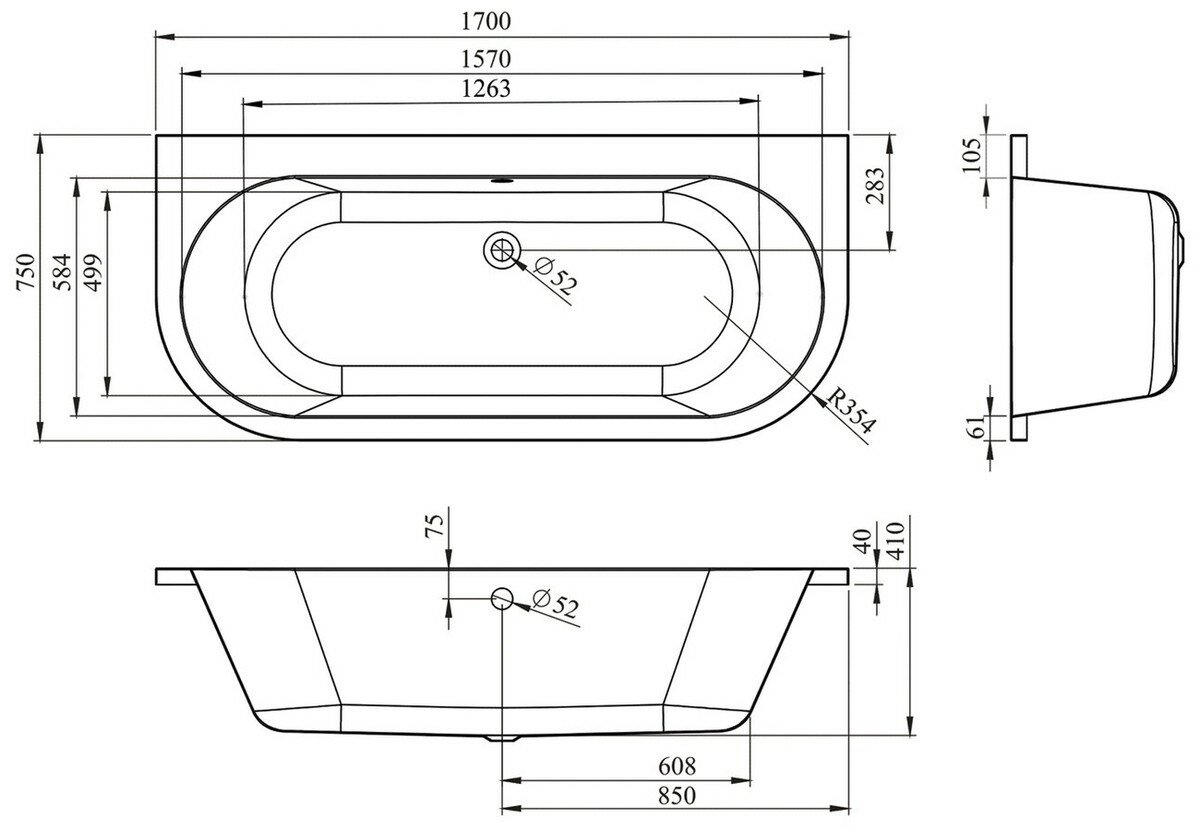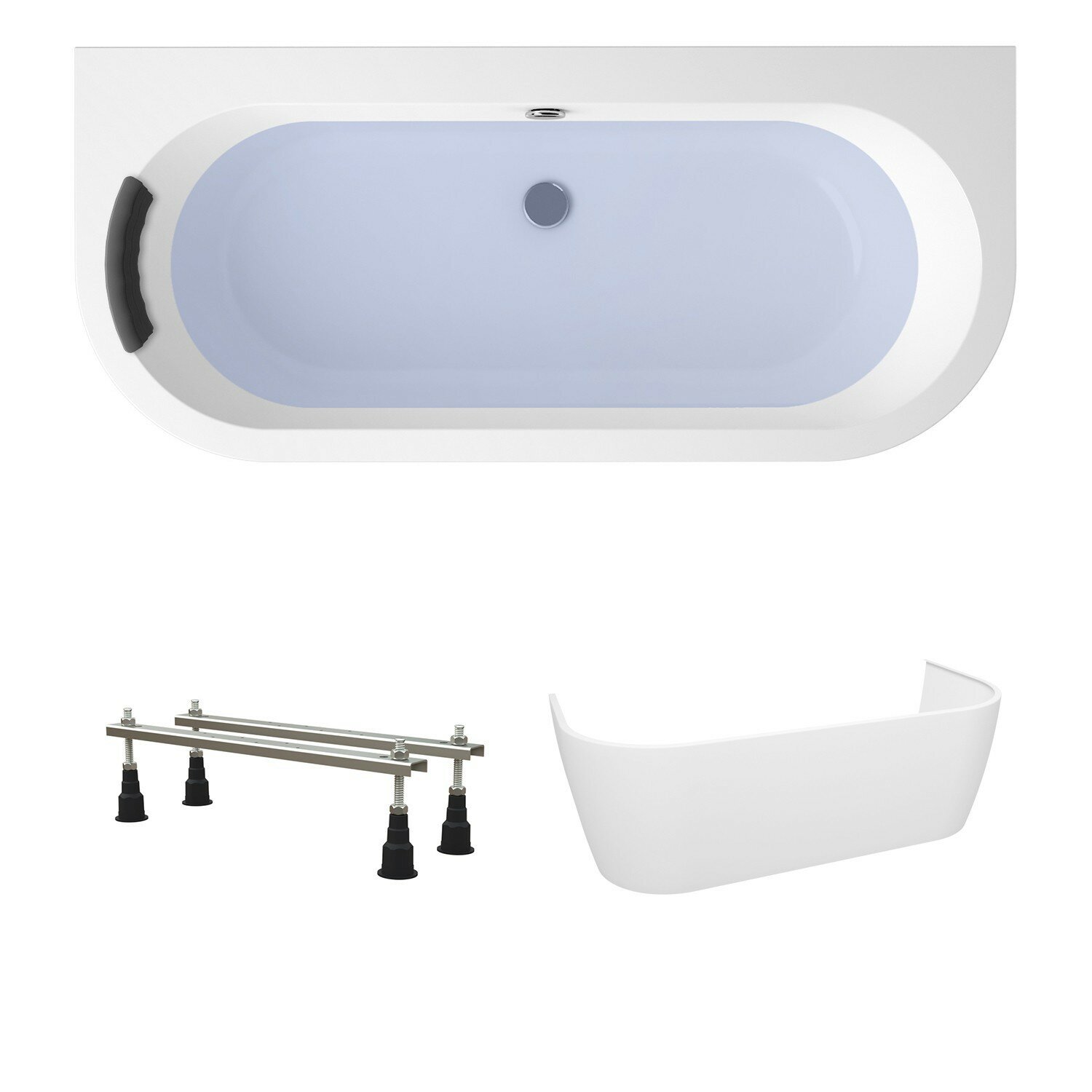 Пристенная ванна акриловая 170x75 Lavinia Boho Art S2-3708075P в наборе 4 в 1: полукруглая ванна 170 x 75 см, ножки, экран, подголовник