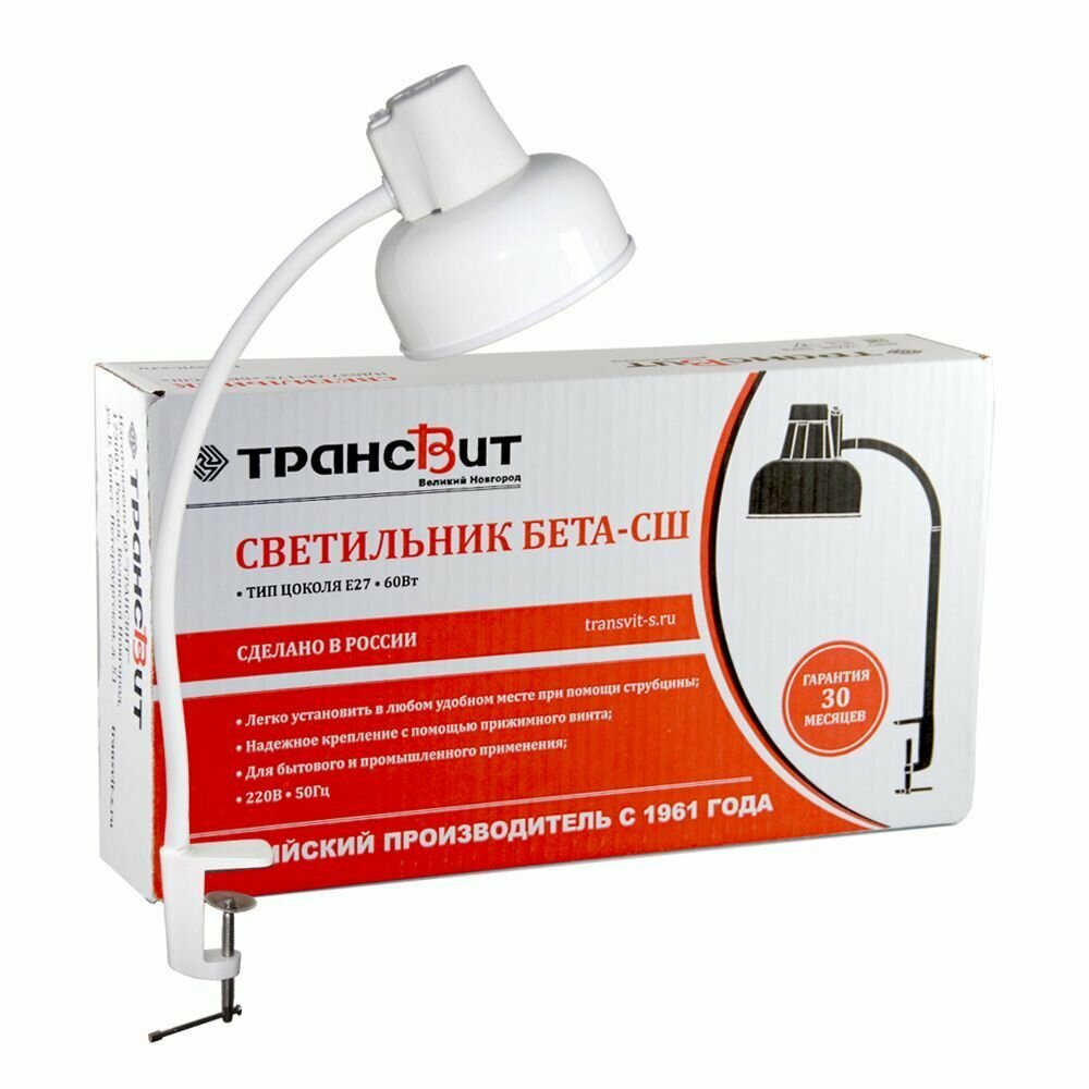 Лампа настольная Бета-СШ на струбцине, 60Вт, 220В, Е27, белый, Трансвит