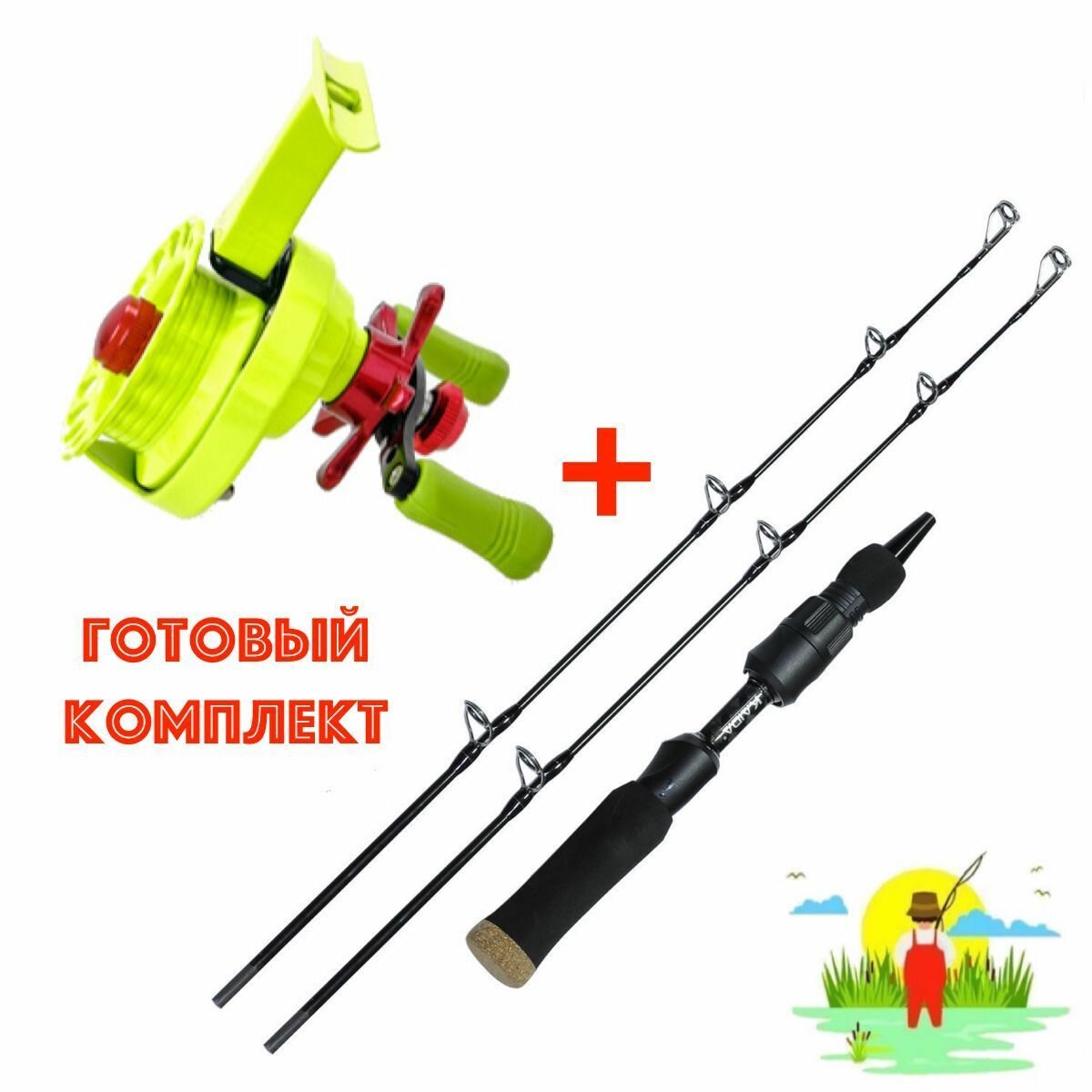 Комплект удочка Kaida Ice Rod 171 + катушка FAL65 4+1, Салатовая / зимняя удочка - 2 хлыста, катушка - Фрикцион STAR DRAG, быстрый сброс, трещетка