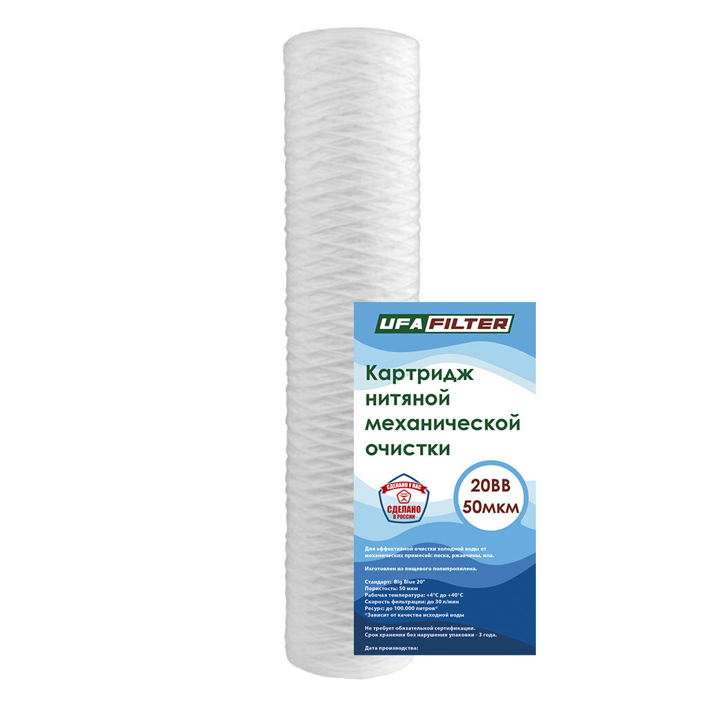 Механический нитяной картридж UFAFILTER 20BB повышенной грязеёмкости (50 микрон) от песка, ржавчины, ила интересное: