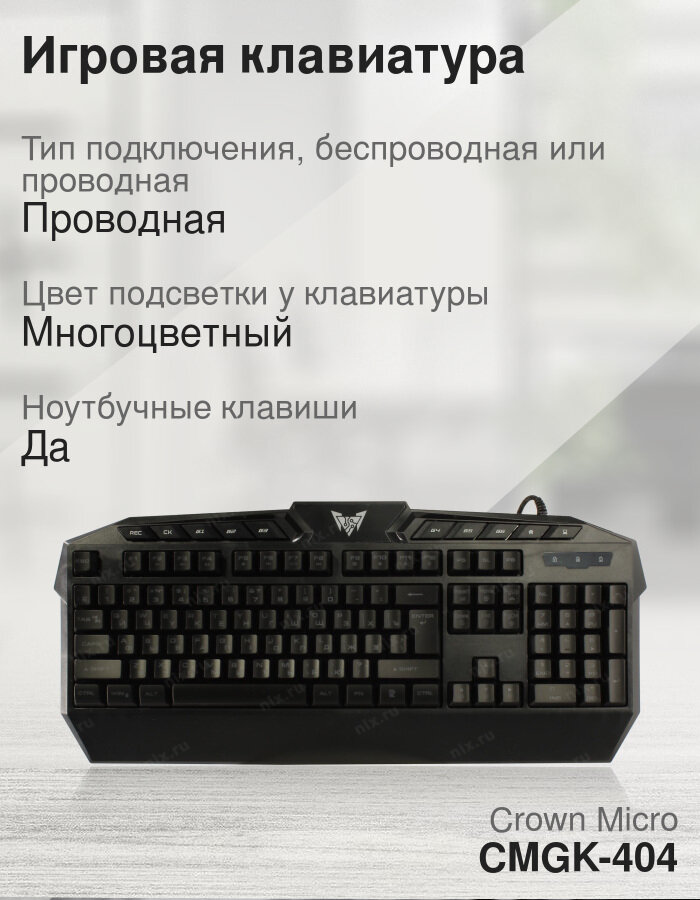 Клавиатура компьютерная игровая Crown CMGK-404 CMGK-404 . интересное: