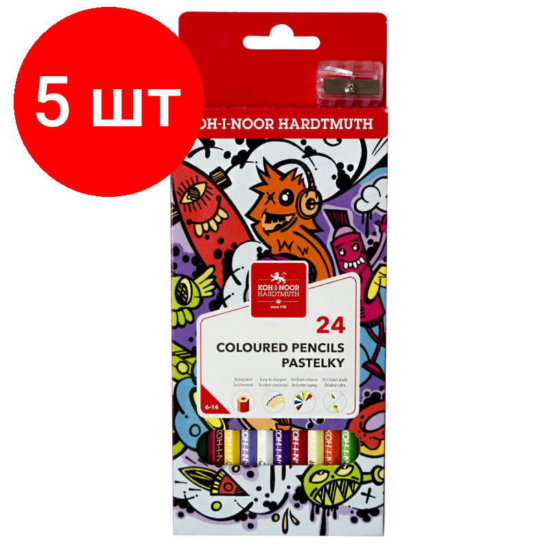 Комплект 5 шт, Карандаши цветные Koh-I-Noor "Teenage", 24цв., заточен., картон, европодвес