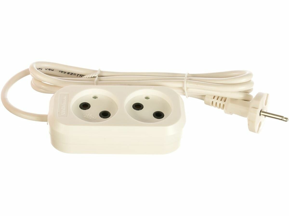 Удлинитель бытовой 2 гнезда, 2 м, ПВС, 2х0.75 мм², без заземления, UNIVersal, У6, 011М-02