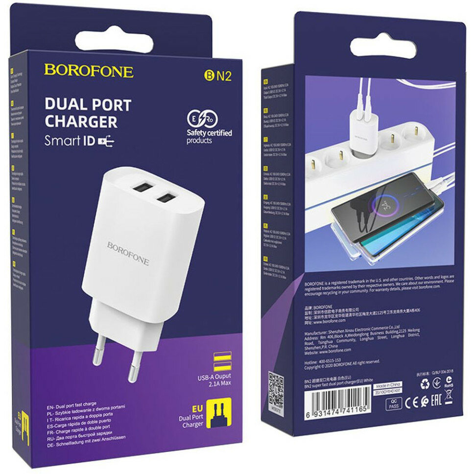Сетевое зарядное устройство (СЗУ) Borofone BN2 (2 USB) 2.1 А, белый интересное: