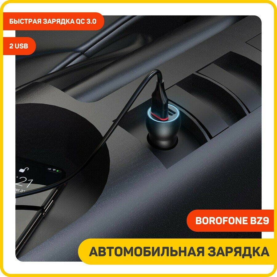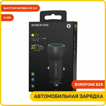 Автомобильное зарядное устройство (АЗУ) Borofone BZ9 (2 USB) 3.1 А, черный интересное: