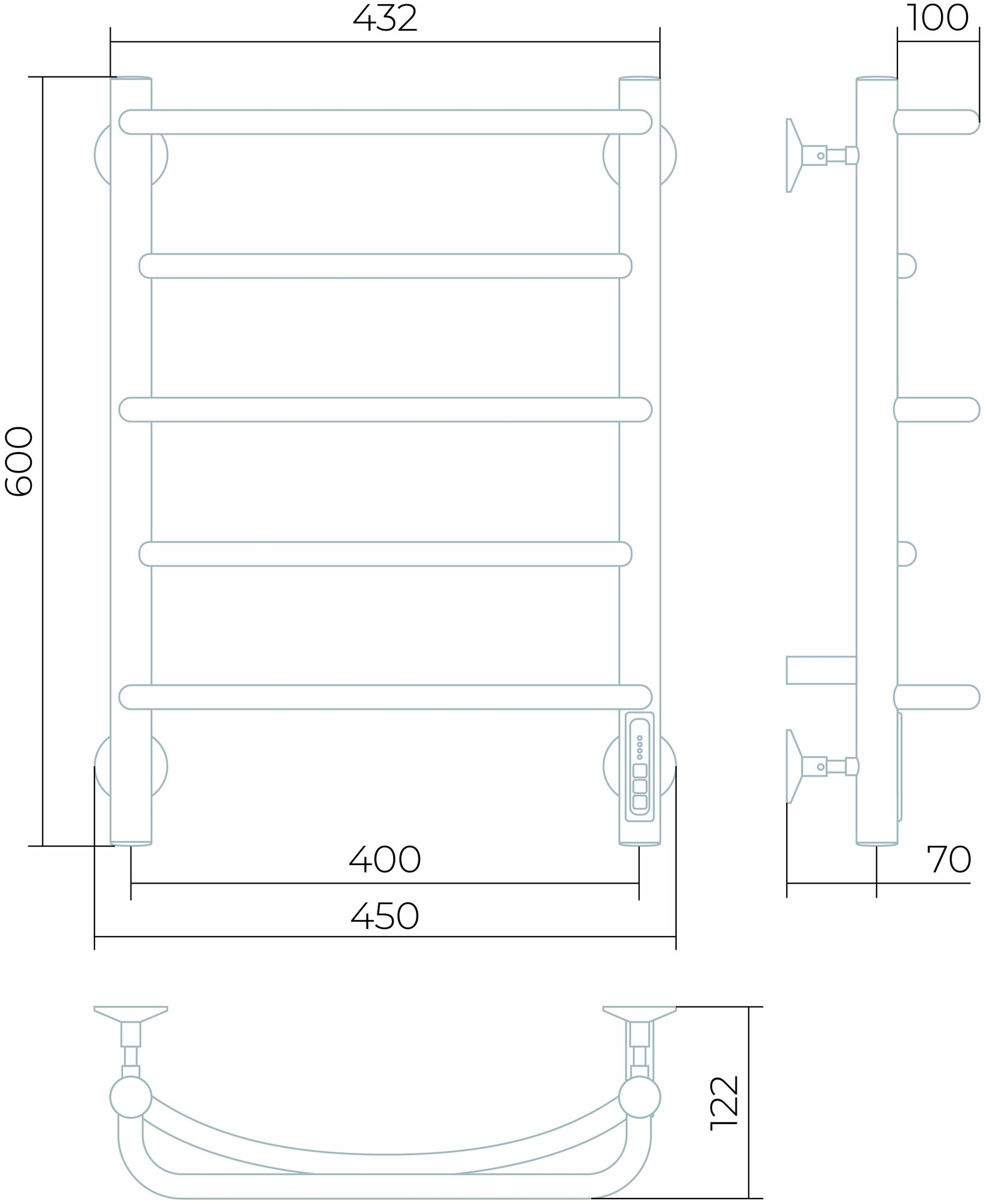 Полотенцесушитель электрический Aquanerzh Прямой групповая с полкой 100x40 лтэн