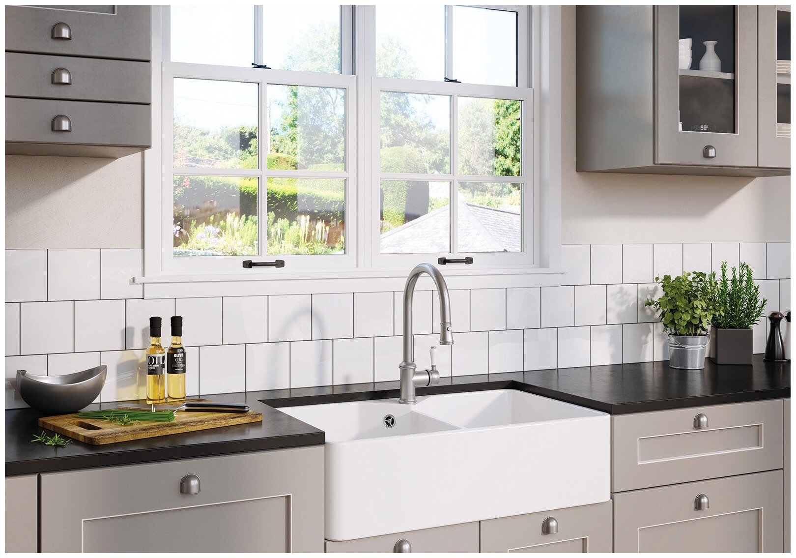 Кухонная мойка Blanco Villae Farmhouse Double, Глянцевый белый, керамика