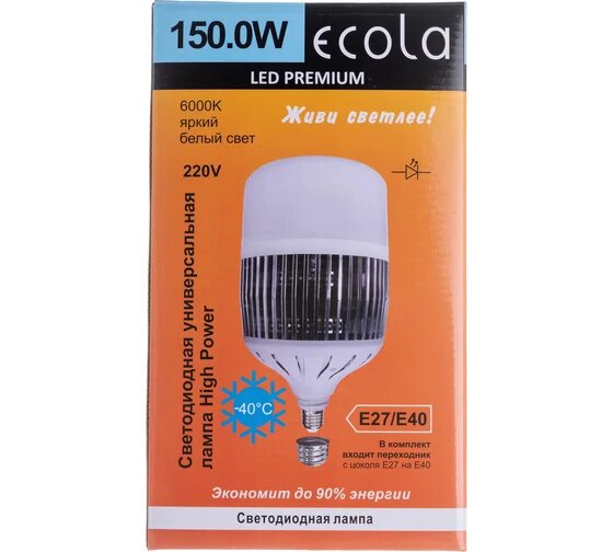 Лампа светодиодная ECOLA High Premium 150W 220V универс. E27/E40 (лампа) 6000K 260х180mm