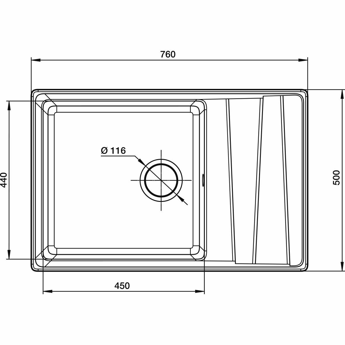 | Дополнительная информация | имеется отверстие для перелива; диаметр сливного отверстия: 11.6 см; установочный проем: 740x480 мм |