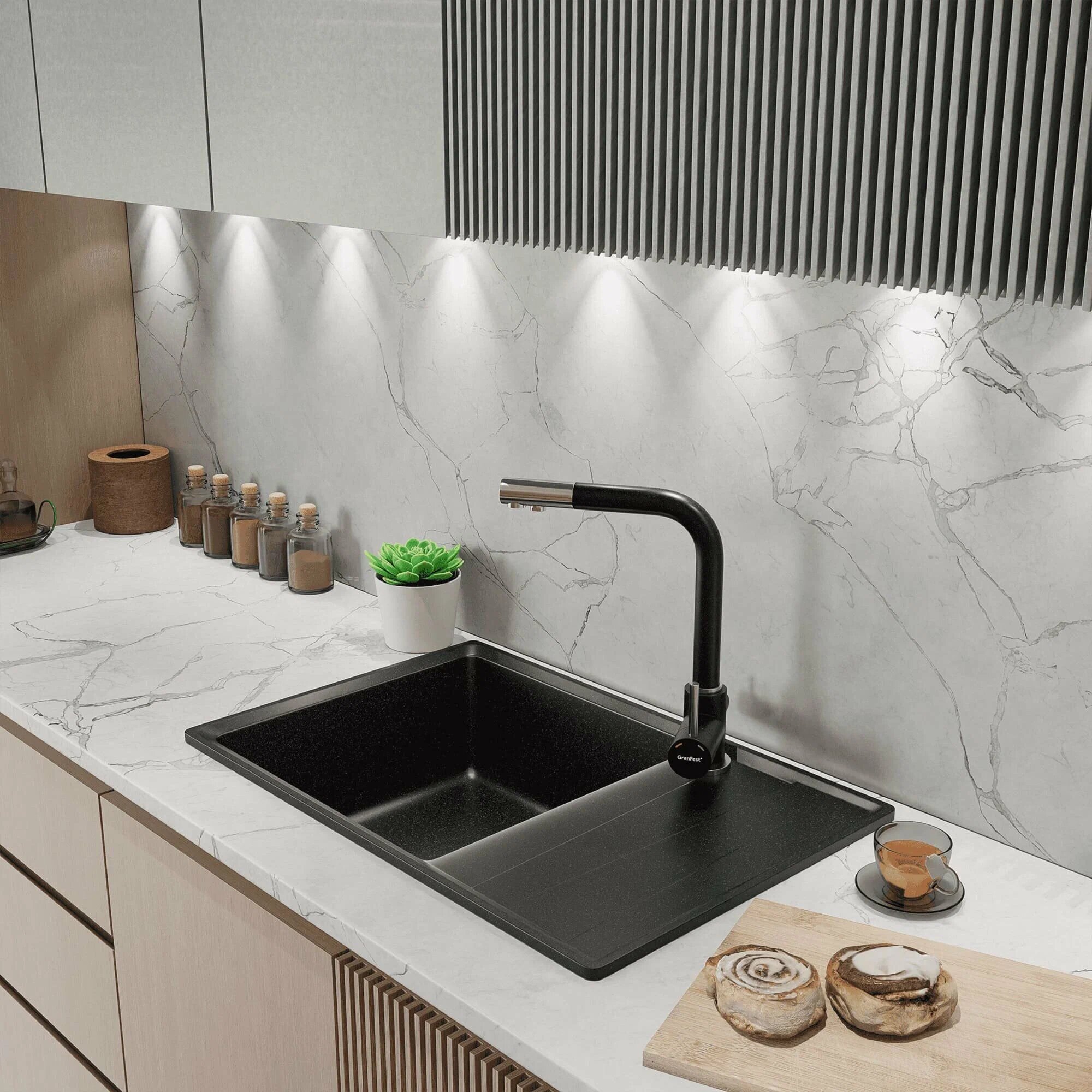 Мойка кухонная GranFest LEVEL GF-LV-760L чаш+кр 760*500мм черный, мрамор
