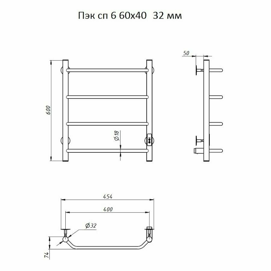 Электрический полотенцесушитель Тругор Пэк сп 6 60x40 32 мм универсальный