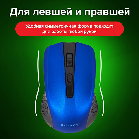 Купить Комплект 2 шт, Мышь беспроводная SONNEN V99, USB, 800/1200/1600 dpi, 4 кнопки, оптическая, синяя, 513530