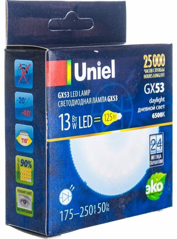 Uniel LED-GX53-13W/6500K/GX53/FR PLZ01WH Лампа светодиодная, матовая. Дневной свет (6500K). Картон. ТМ Uniel.