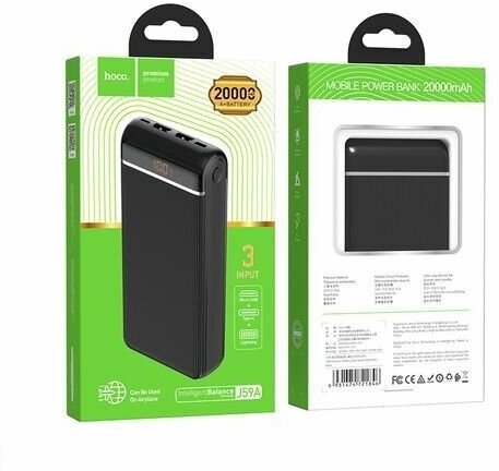 Портативный аккумулятор HOCO J59A, 20000mAh, 2 USB выхода, Micro, Lightning и Type-C входы, дисплей, чёрный
